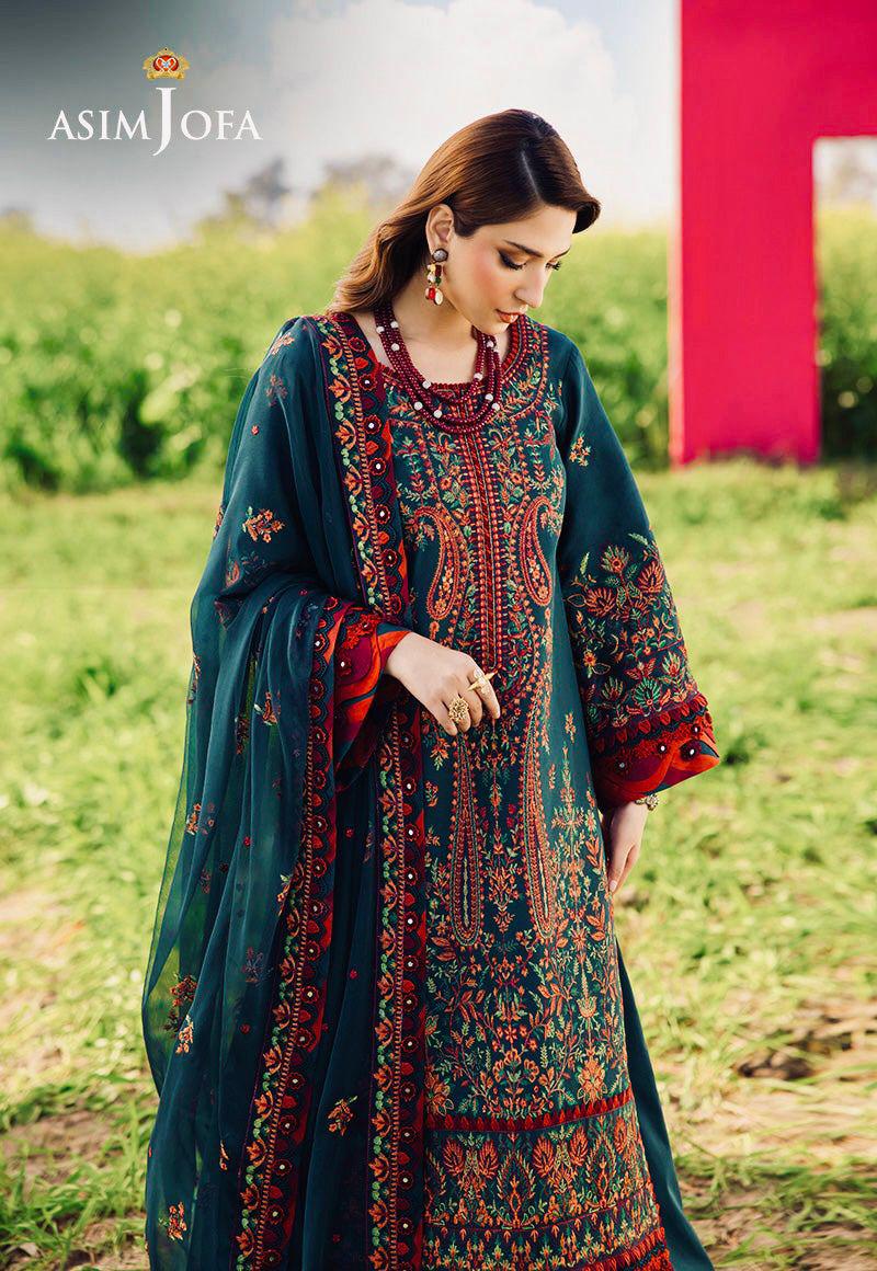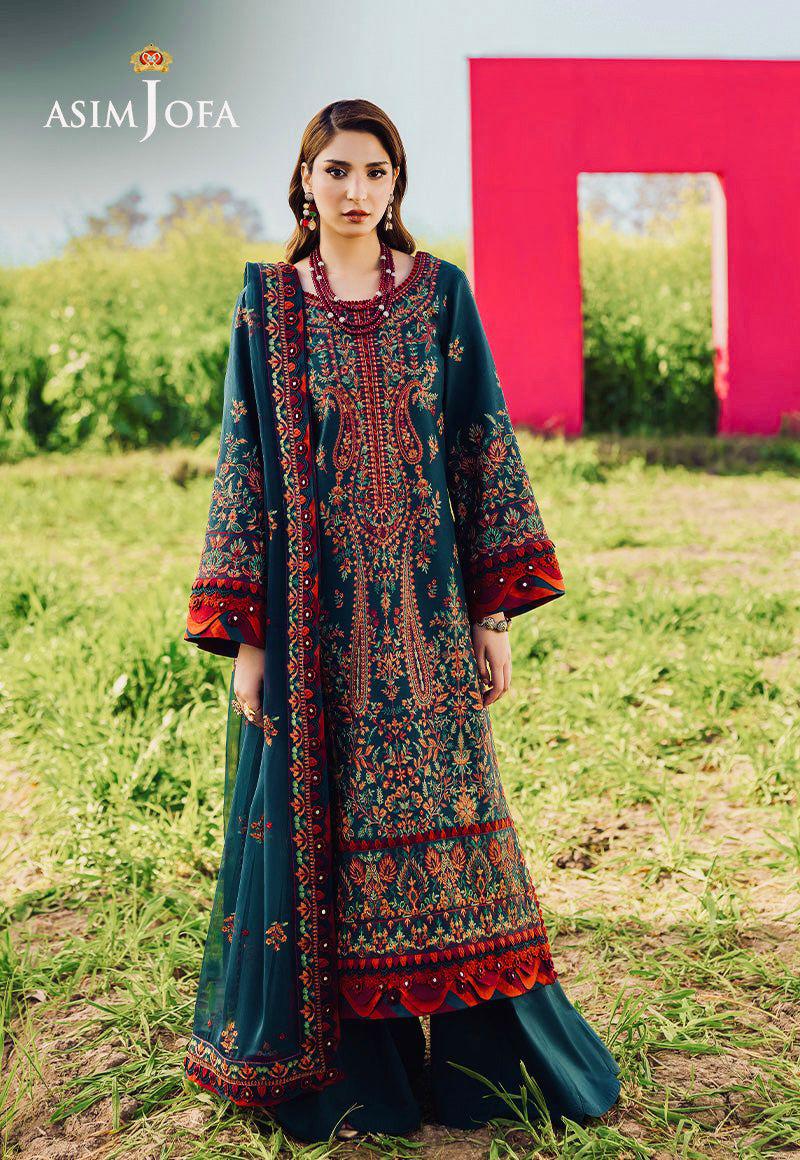 Suidhagay S -(D-34)- Asim Jofa 3pc Embroidered dress With Embroidered Shafoon Dupatta